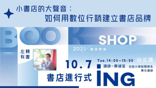 【小書店的大聲音:如何用數位行銷打造書店品牌 】feat.鄭緯筌(世新大學新聞學系兼任講師/臺灣電子商務暨創業聯誼會共同創辦人)